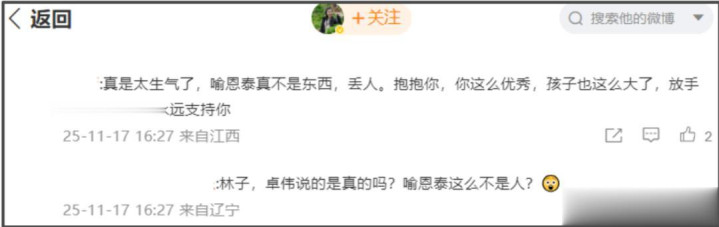 目前喻恩泰和史林子都还没有回应,但已经有不止一位网友怀疑男方出轨,还扒出了他和长发女子吃饭的照片,风波逐渐升级。